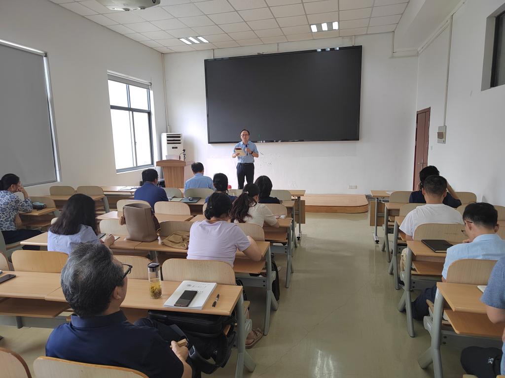 院长黄志刚传达了学校本科教育教学审核评估预诊断会的会议精神,强调各位老师要提高思想认识,深刻认识到本科教育教学审核评估的重要性,梳理好相关教学材料,上好每一堂课,强化思政元素的融入和教学两性一度标准的提高,以积极的精神面貌迎接此次审核评估。