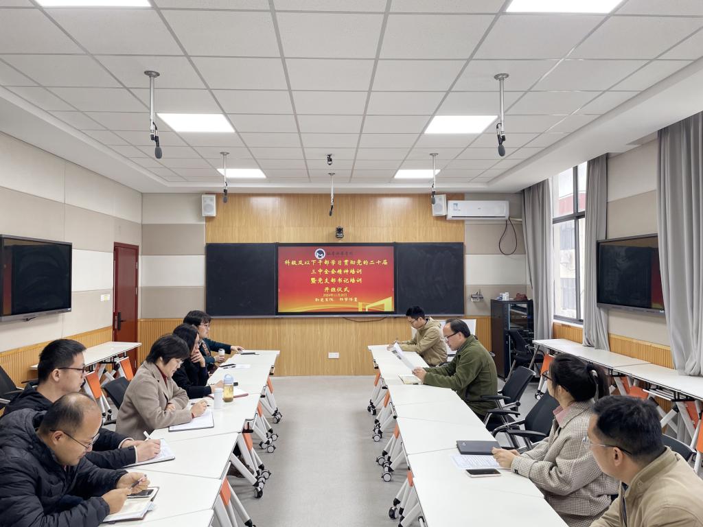 开展科级及以下干部学习贯彻党的二十届三中全会精神培训暨党支部书记培训开班仪式。学院党委书记王开永主持会议,学院党委领导班子、科级领导干部、系主任和副主任、党支部书记、分工会主席参加活动。