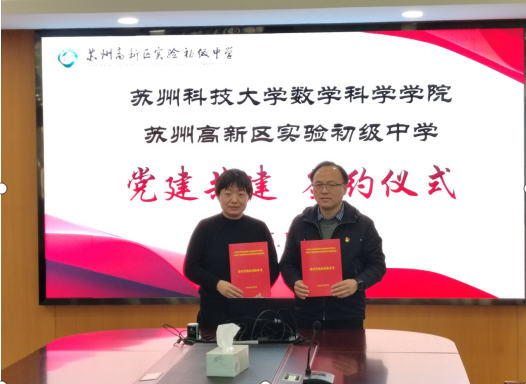 与苏州高新区实验初级中学举行党建共建签约仪式。苏州高新区实验初级中学副校长张波、副校长张晓兵,BB体育