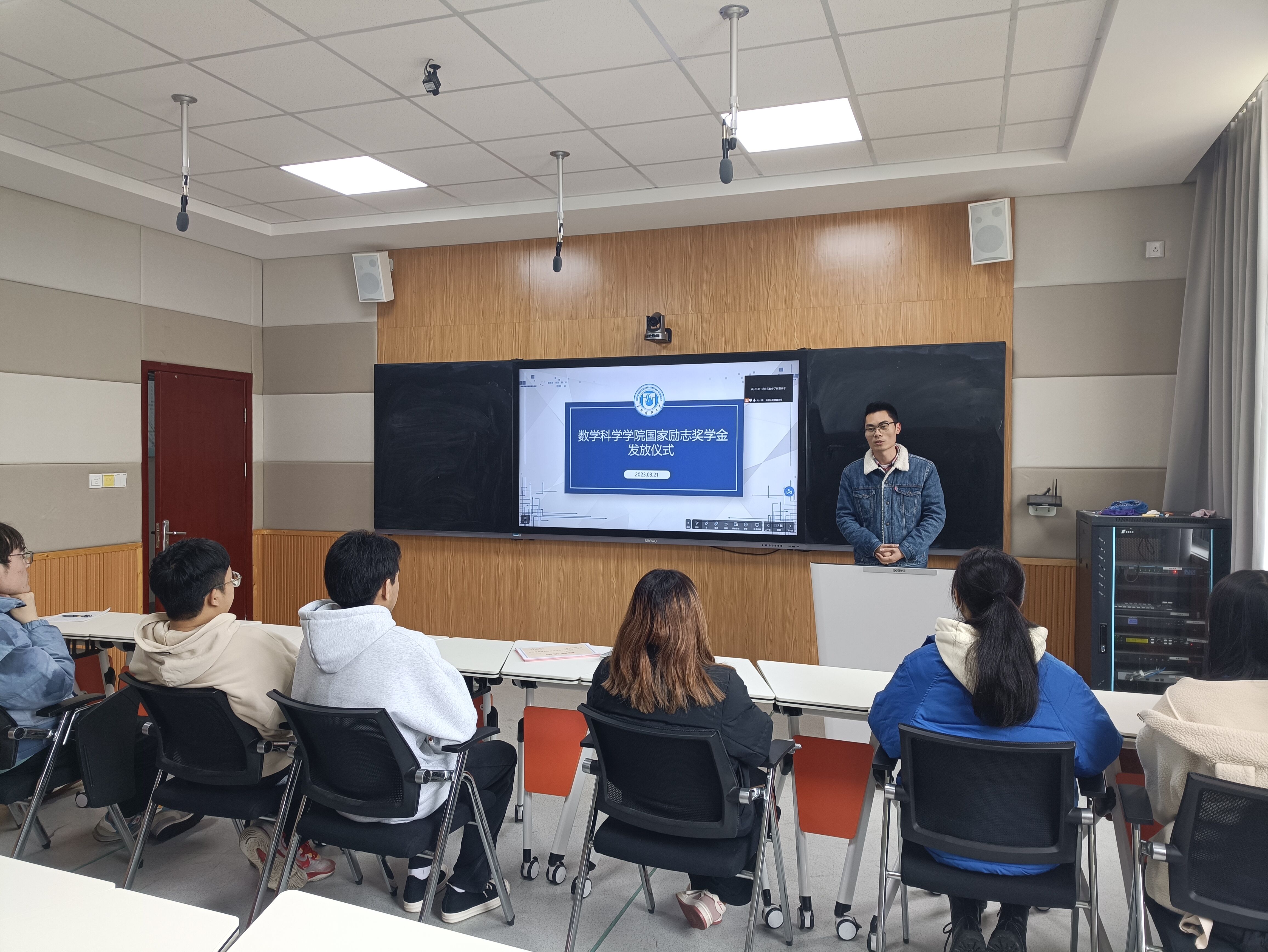 于3月21日在教2楼308室举行了国家励志奖学金发放仪式。本次会议由辅导员楼晓丹主持,学工办主任兼团委书记程智龙、辅导员许顺杰及全体2022年度国家励志奖学金获得者参加。