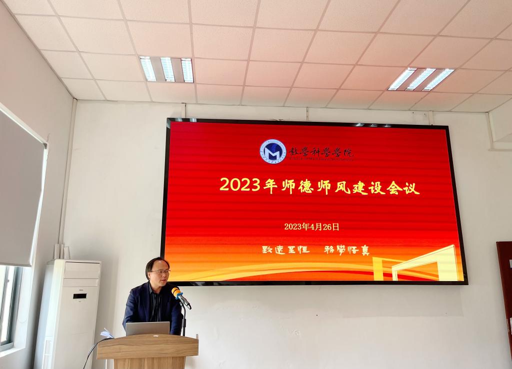 于教2-303召开2023年师德师风建设大会,全体教职工参加会议。会议由学院党委书记王开永主持。