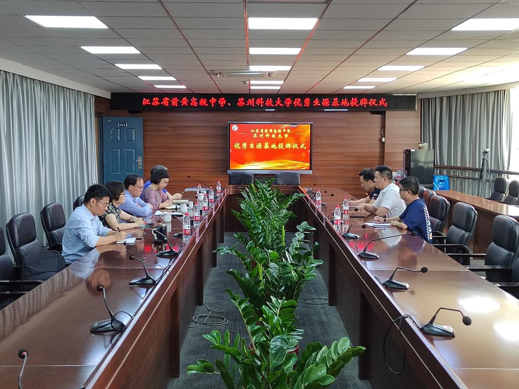 6月14日下午,我校赴江苏省前黄高级中学举行“优质生源基地”签约挂牌仪式。前黄高级中学副校长王波、学生发展处副处长周大勇、宣传联络处副处长党强强等领导和我校BB体育