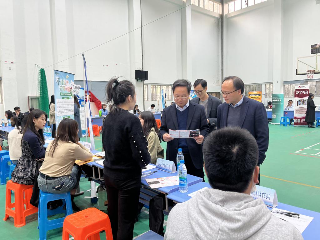 2024届毕业生招聘会第二场在教工之家举办。学院党委书记王开永、院长黄志刚、党委副书记兼副院长胡世怡及毕业班辅导员来到招聘会现场,与用人单位展开深入交流,指导毕业生求职。