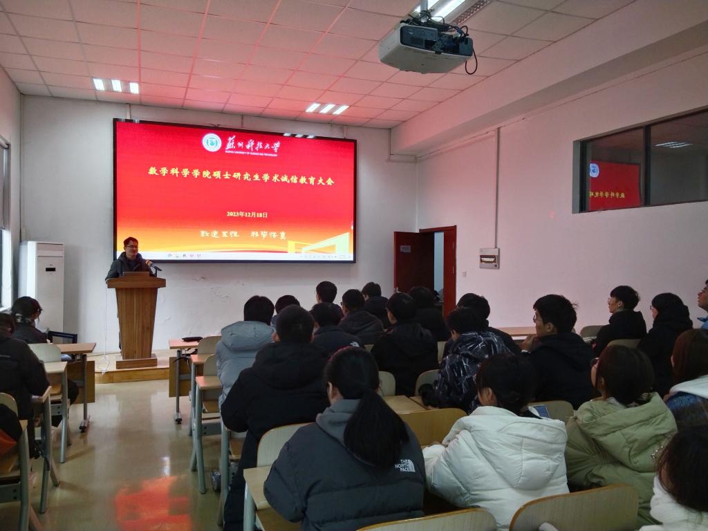 在教二-303教室开展2023年研究生学术诚信与规范主题教育班会, 2023级全体研究生参加,研究生辅导员程智龙主持,学院辅导员王伟老师出席。