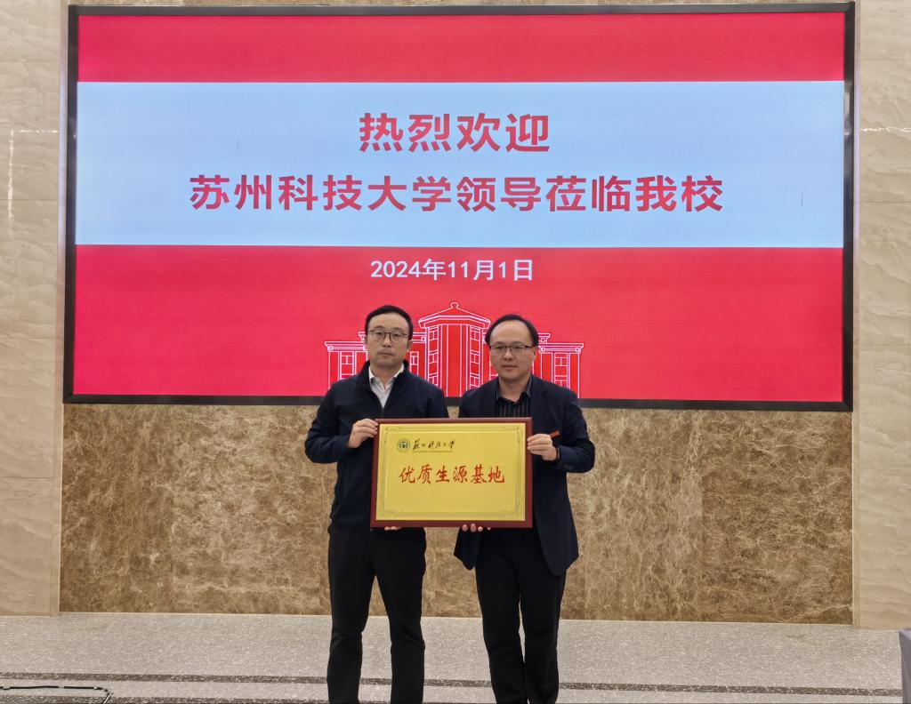 11月1日,我校赴无锡市第一中学举行“优质生源基地”签约挂牌仪式。无锡市第一中学校长陈博、副校长赵怡等领导,苏州科技大学无锡校友会常务副会长张玉宝、副会长吴东华、秘书长杨军,BB体育