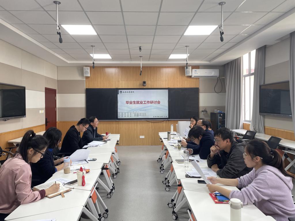 会上,学院党委副书记兼副院长胡世怡传达了学校关于毕业生就业工作的重要精神,并详细分析了2024届毕业生就业情况,指出当前存在的困难,提出了下一步工作计划。会议第二阶段研究了2025届毕业生学业和就业问题。毕业班辅导员楼晓丹和许顺杰分别汇报了2025届毕业班学业情况,分析了重点人群的情况;汇报了毕业生的就业意向以及考研报名情况。参会人员针对存在的问题研究了处理方法和帮扶政策,助推学院高质量就业。