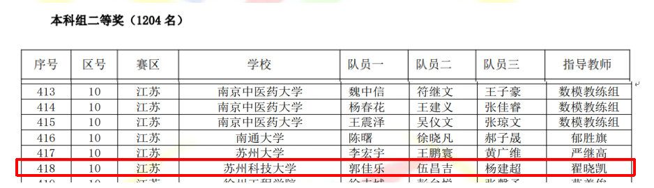 近日,2024年全国大学生数学建模竞赛成绩揭晓。我校共有47支队伍成功参赛,获得全国二等奖1项,江苏省赛区一等奖1项,二等奖2项,三等奖7项。