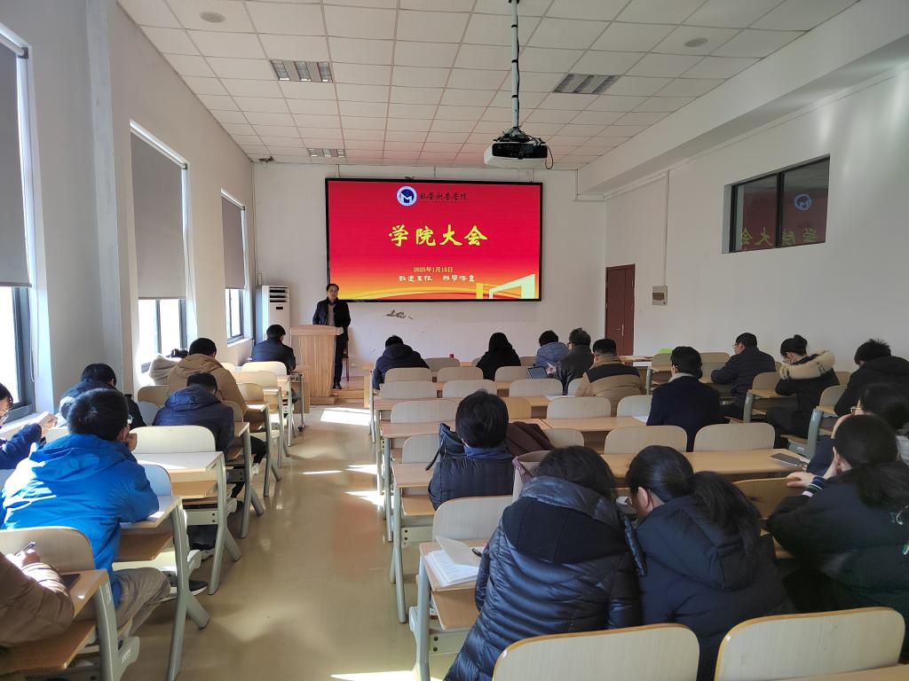于教2-303召开期末教职工大会,全体教职工参加会议。会议由学院党委书记王开永主持。