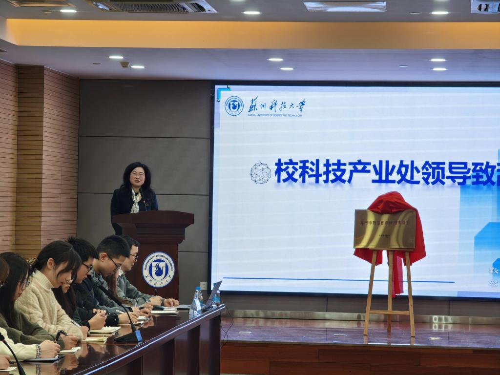 校企共建“苏州市大数据分析与人工智能创新应用实验室”启动揭牌仪式在图书馆八楼会议室举行,此次揭牌仪式邀请了中软国际软件(苏州)有限公司总经理潘丹、江苏浒墅关投资控股集团有限公司副总经理宋楚楚、苏州浒墅关数字经济产业发展有限公司部长赵东明、校科技产业处处长范凌云、BB体育