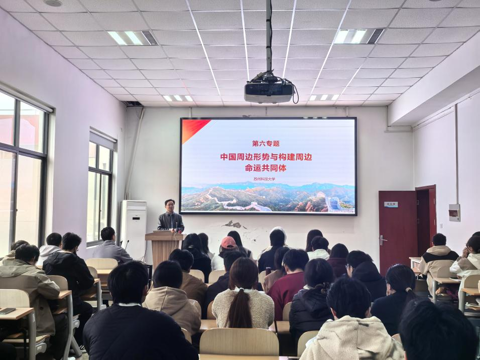 黄志刚以“中国周边形势与构建周边命运共同体”为主题,围绕“新时代中国周边工作新成就”“中国周边工作面临的新形势”“努力开创周边工作新局面”等方面进行讲授。他鼓励同学们要加强专业学习,全面提高自身素质,以青春之力为构建中国周边命运共同体注入鲜活动能。