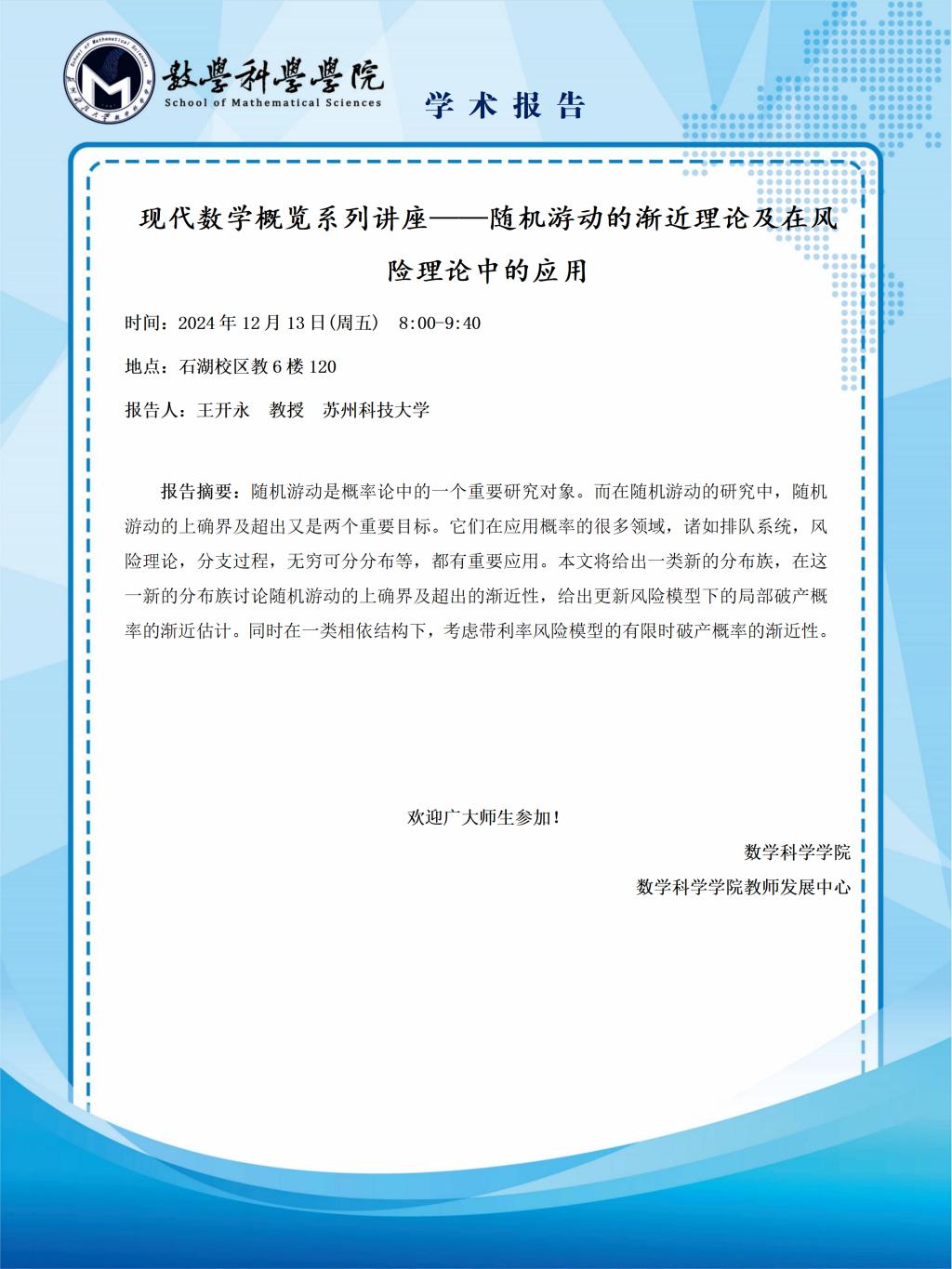 现代数学概览系列讲座——随机游动的渐近理论及在风险理论中的应用