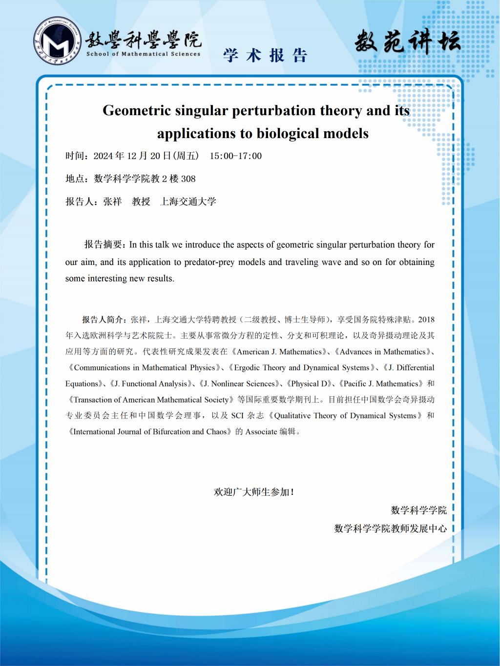 【数苑讲坛】第五讲:Geometric singular perturbation theory and its applications to biological models