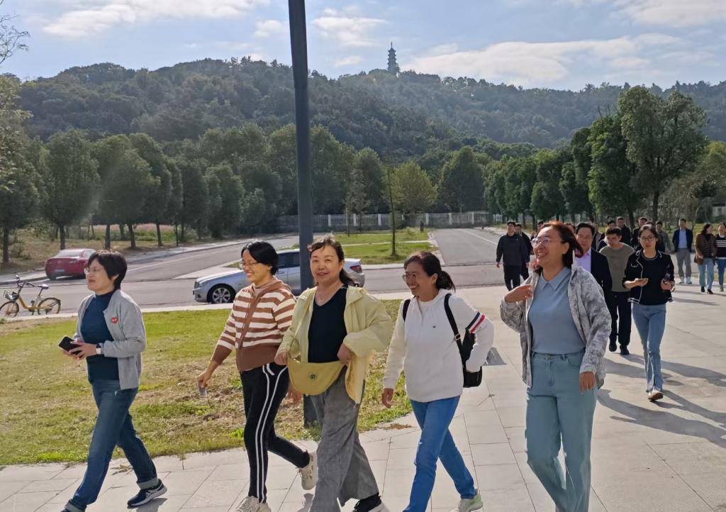 在活动过程中,教师们精神抖擞,状态极佳。他们三五成群,欢声笑语,沿着预定的路线依次通过石湖校区塔影阁、东区敬文书院2号楼、行政楼一楼报告厅、西校区一站式服务中心4个打卡点,最终在石湖校区塔影阁结束。