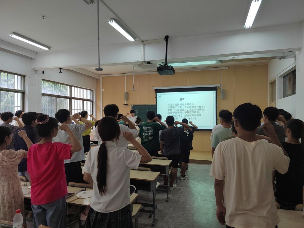 宣誓一份承诺,不忘初心使命。9月10日,全体同学在教师节之际立下铮铮誓言,将心怀“国之大者”,勇担乡村教育使命;坚持修身养正,崇尚“教育家精神”;秉持“工匠精神”,深耕细作、扎实学识,竭尽全力成长为一名新时代“四有”好老师。